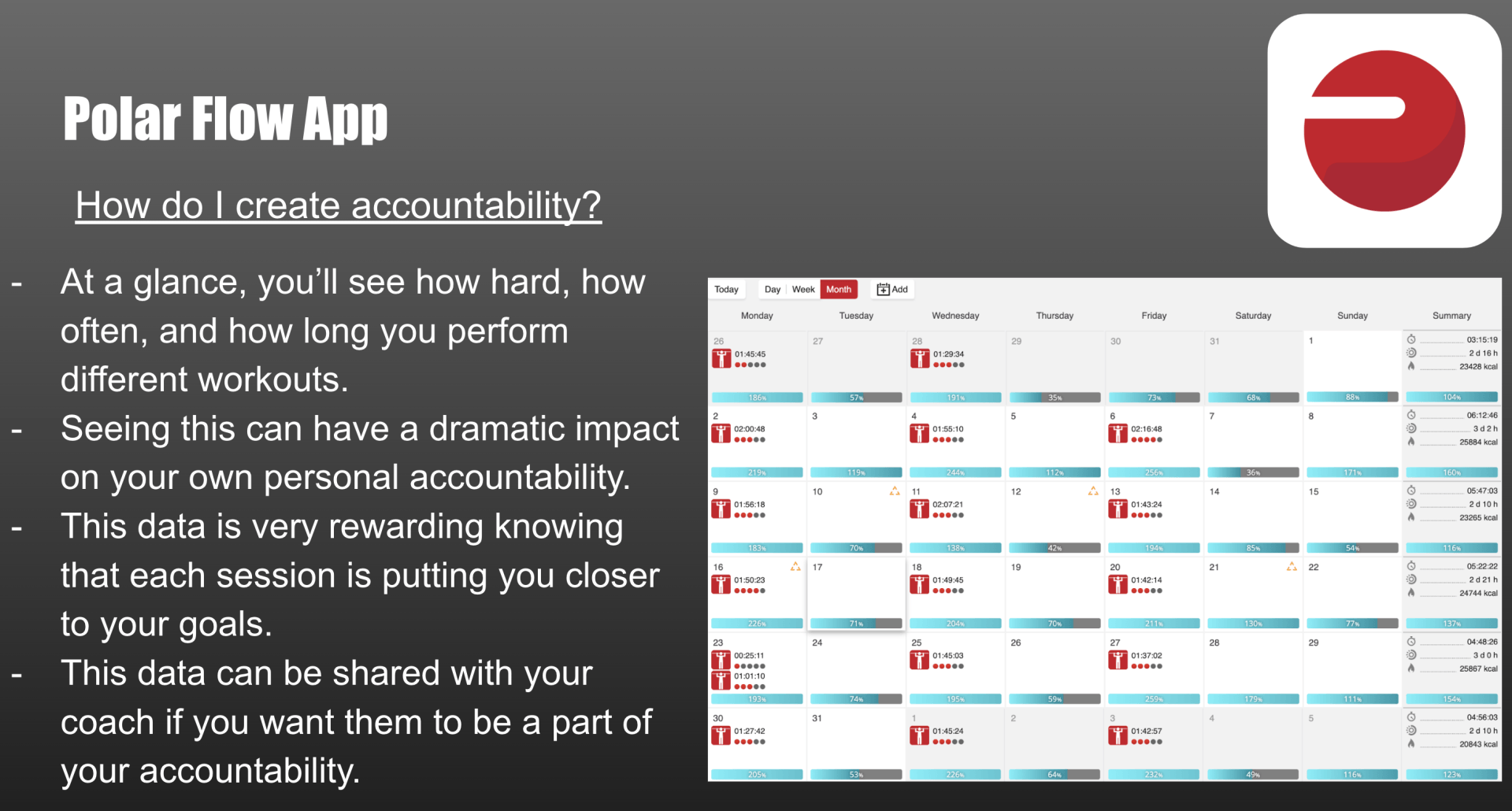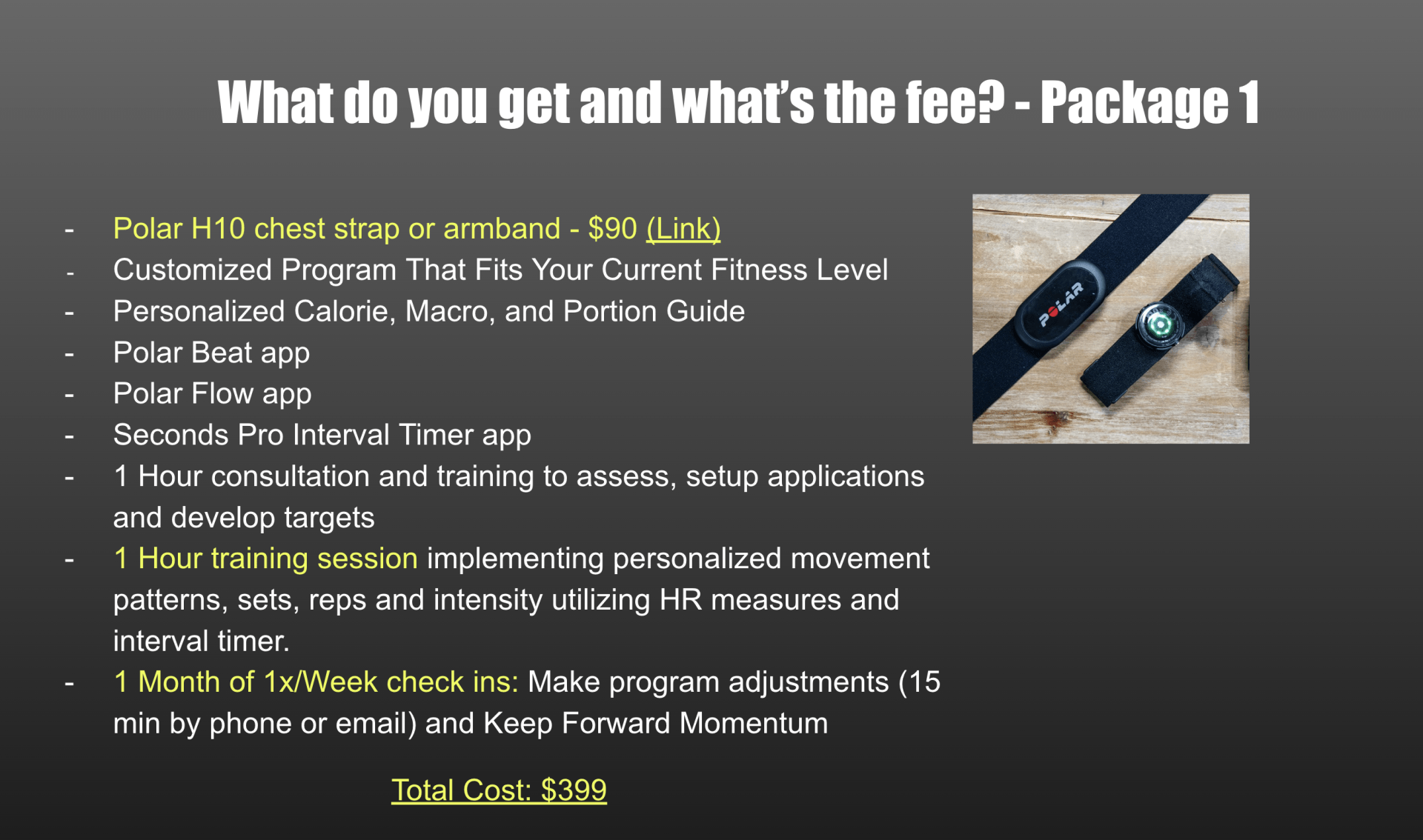 - A number of personal training sessions followed with weekly accountability check-ins